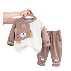 2025 Meninos Outono Terno Novo Bebê Outono Lapela Urso Cabeça de manga comprida Conjunto de duas peças