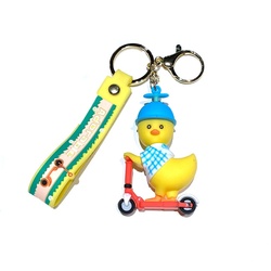 Cute Cycling Duck and Bear Couple Machine Pendant Cartoon PVC Keychain para Bag Small Plastic Gift Keychain